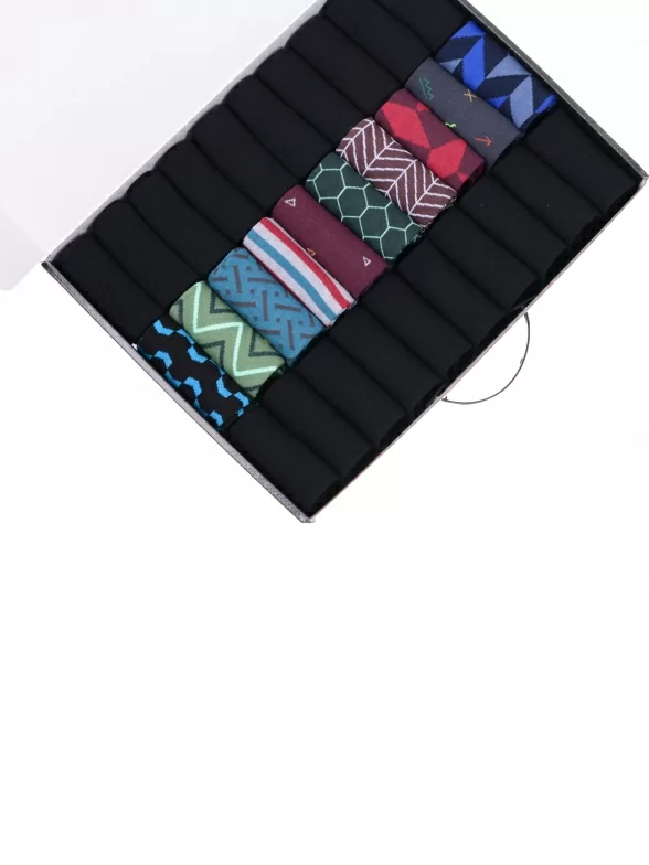 В этот набор мужских носков MSCLUB входят входят 20 пар в классическом черном цвете и 10 пар ярких носков с различными принтами, которые подойдут для любого повседневного образа.