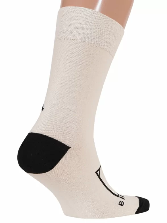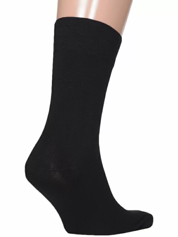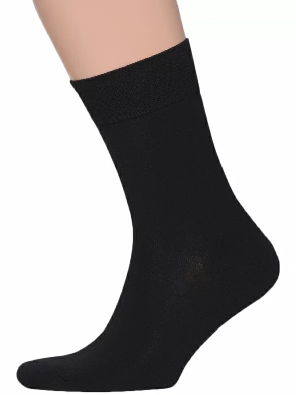 Носки вяжутся на российской фабрике МС Клаб на современных станках высокого класса (с плотностью вязки в 200 игл). Благодаря качественному оборудованию и оптимальному сочетанию гребенного хлопка и синтетических нитей эти носки износостойкие, гладкие и плотные. Двойной широкий борт не пережимает ногу, при этом надежно фиксирует носок на голени.