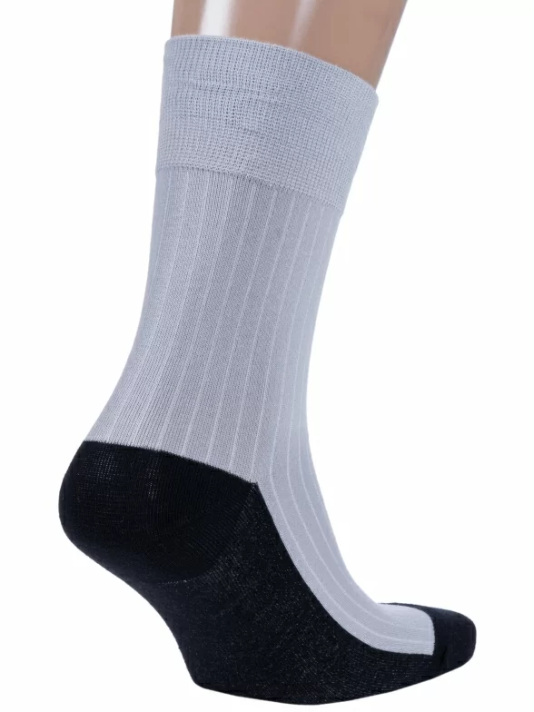 Носки вяжутся на российской фабрике МС Клаб на современных станках высокого класса (с плотностью вязки в 200 игл). Благодаря качественному оборудованию и оптимальному сочетанию гребенного хлопка и синтетических нитей эти носки износостойкие, гладкие и плотные. Двойной широкий борт не пережимает ногу, при этом надежно фиксирует носок на голени.