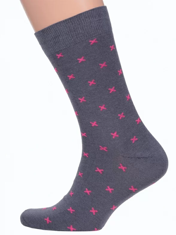 Модель средней длины с двойным бортом (манжетом резинки) и обычным швом на мыске связана из хлопка на российской фабрике. Входящие также в состав полиамид и эластан делают носки более плотными, эластичными и износостойкими.