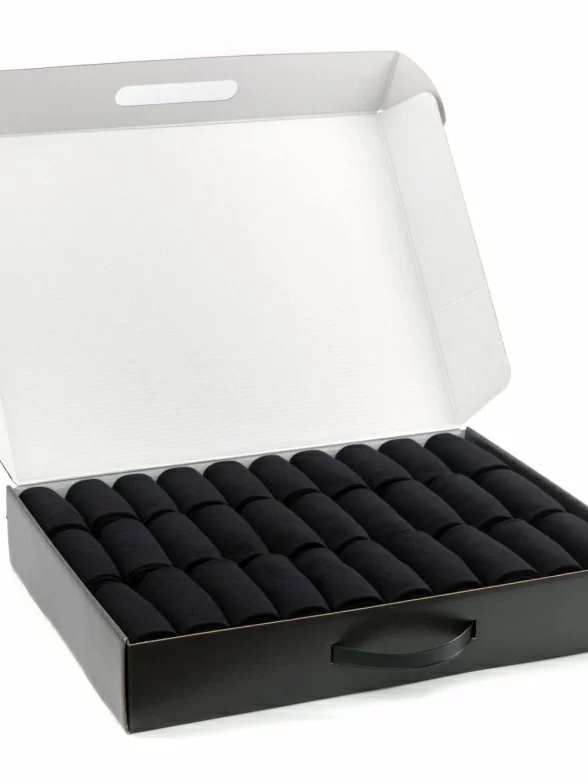 Носки компактно свернуты рулончиками без фабричных этикеток внутри стильной фирменной коробки. Дополнительно упакована в плотный картон, предотвращающий возможные потертости и деформацию во время доставки.