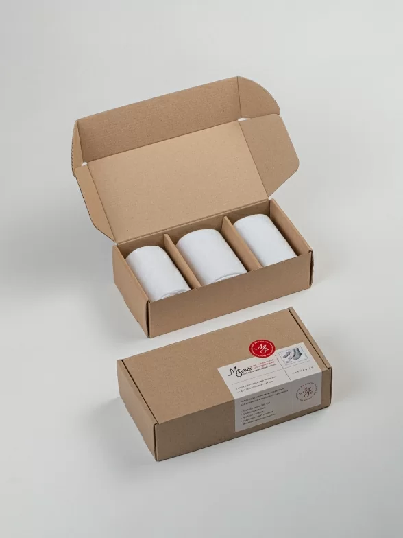 Носки компактно свернуты в аккуратные рулончики внутри стильной фирменной коробки. Для сохранности внешнего вида при транспортировке набор упаковывается в плотный картон.
