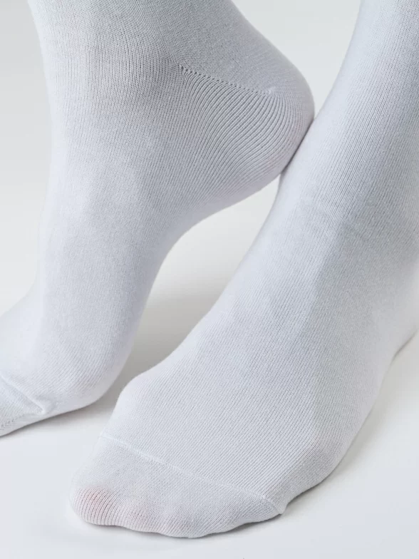 Носки вяжутся на российской фабрике на современных станках высокого класса (с плотностью вязки в 200 игл). Благодаря качественному оборудованию и оптимальному сочетанию гребенного хлопка и синтетических нитей эти носки износостойкие, гладкие и плотные. Двойной широкий борт не пережимает ногу, при этом надежно фиксирует носок на голени.
