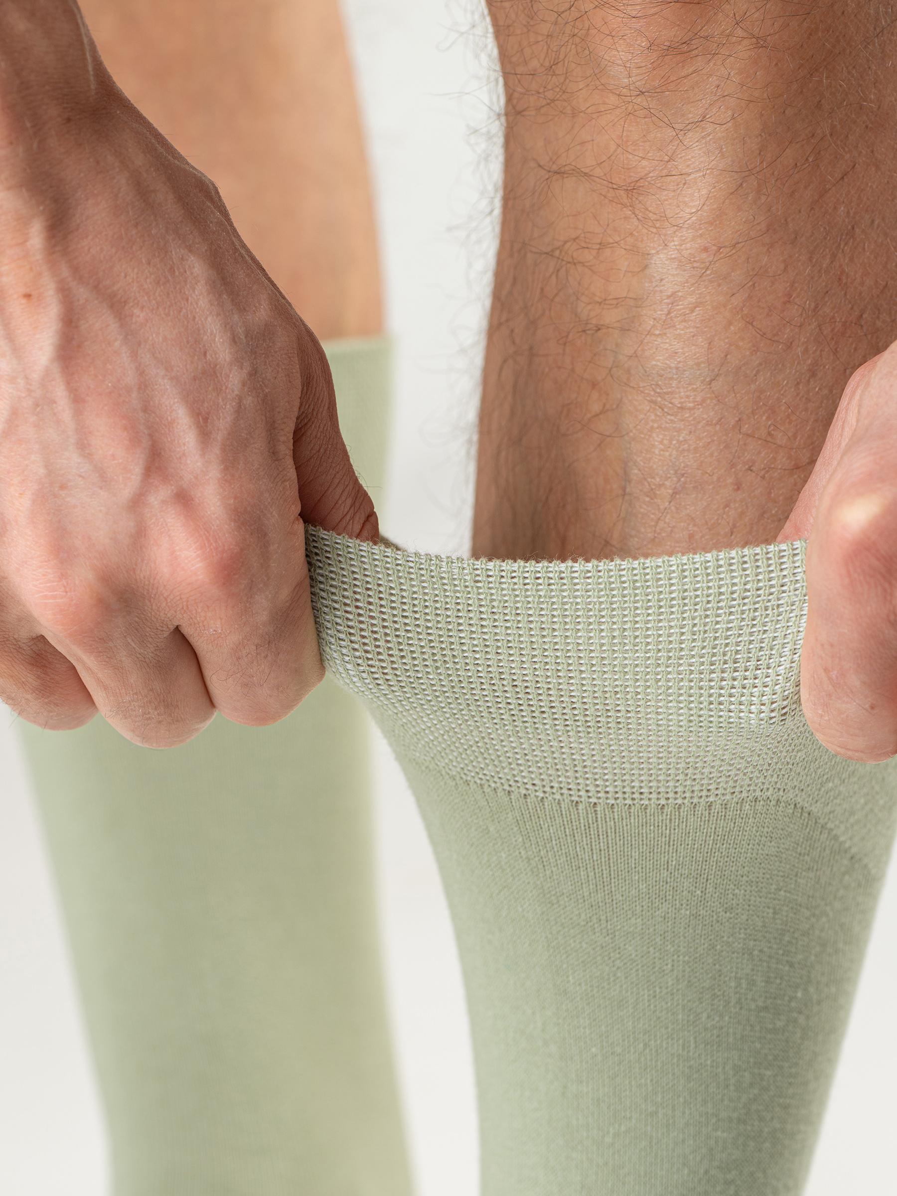 Носки вяжутся на российской фабрике на современных станках высокого класса (с плотностью вязки в 200 игл). Благодаря качественному оборудованию и оптимальному сочетанию гребенного хлопка и синтетических нитей эти носки износостойкие, гладкие и плотные. Двойной широкий борт не пережимает ногу, при этом надежно фиксирует носок на голени.