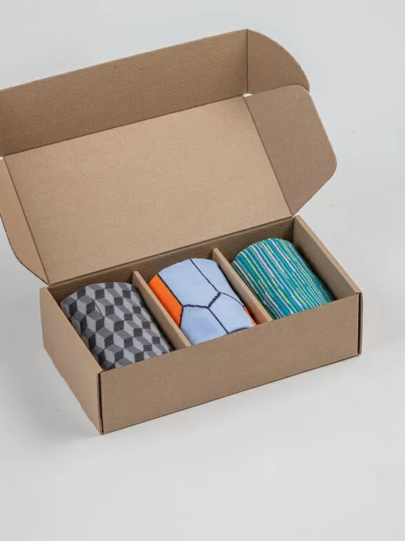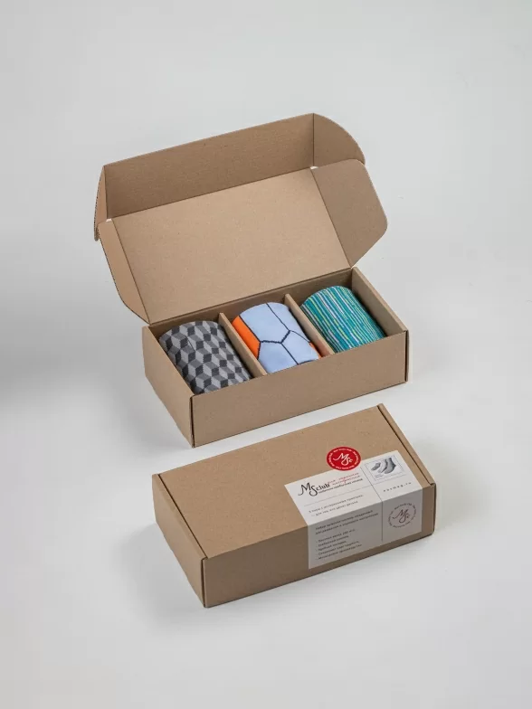 Носки компактно свернуты в аккуратные рулончики внутри стильной фирменной коробки. Для сохранности внешнего вида при транспортировке набор упаковывается в плотный картон.