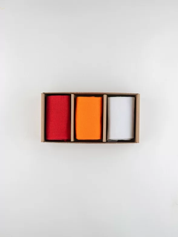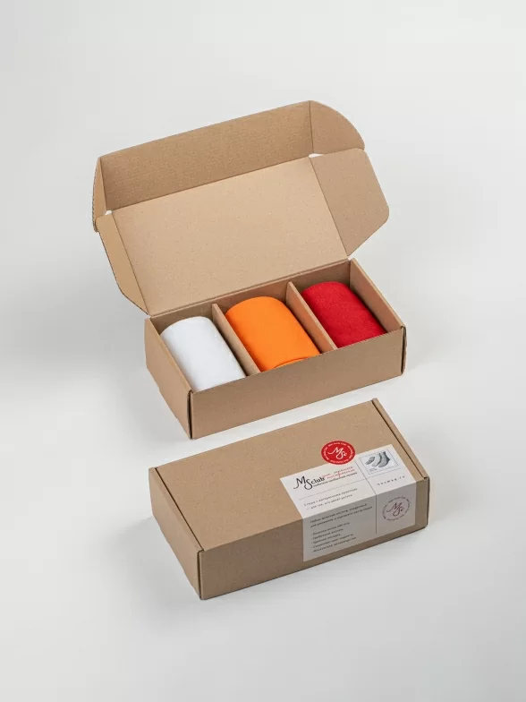 Носки компактно свернуты в аккуратные рулончики внутри стильной фирменной коробки. Для сохранности внешнего вида при транспортировке набор упаковывается в плотный картон.