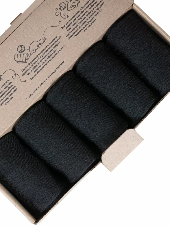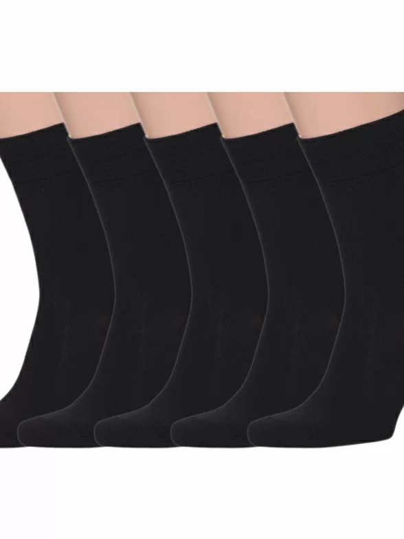 Набор из 5 пар черных однотонных мужских носков MSCLUB позволит на время забыть о проблеме поиска пары одинаковых носков по утрам.