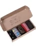 Носки без фабричных этикеток компактно свернуты в аккуратные рулончики внутри стильной фирменной коробки.