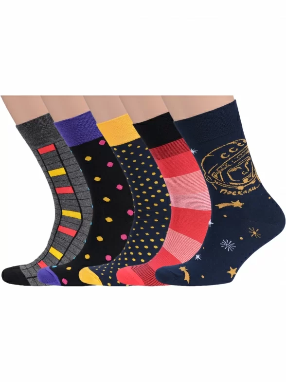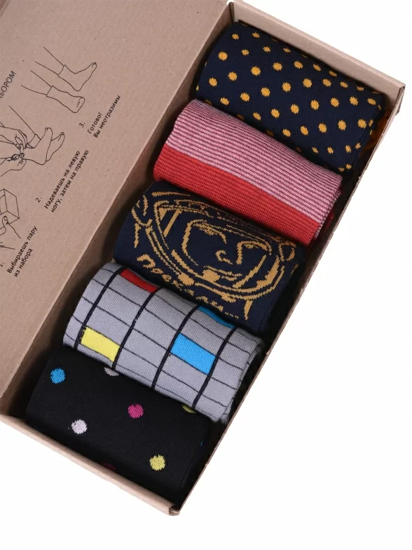 Набор мужских качественных носков пригодится каждому мужчине любого возраста. В комплект входит 5 разных пар носков с различными принтами.