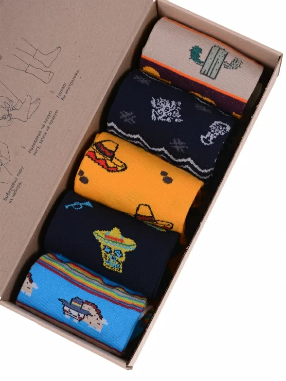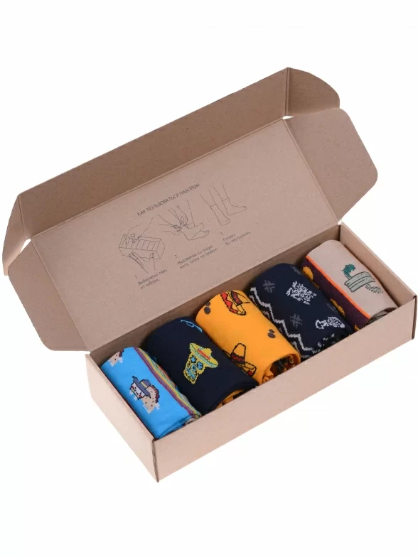 Набор мужских качественных носков пригодится каждому мужчине любого возраста. В комплект входит 5 разных пар носков с различными принтами.