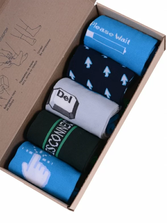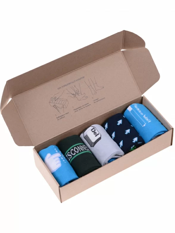 Набор мужских качественных носков пригодится каждому мужчине любого возраста. В комплект входит 5 разных пар носков с различными принтами.