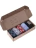 Носки без фабричных этикеток компактно свернуты в аккуратные рулончики внутри стильной фирменной коробки.