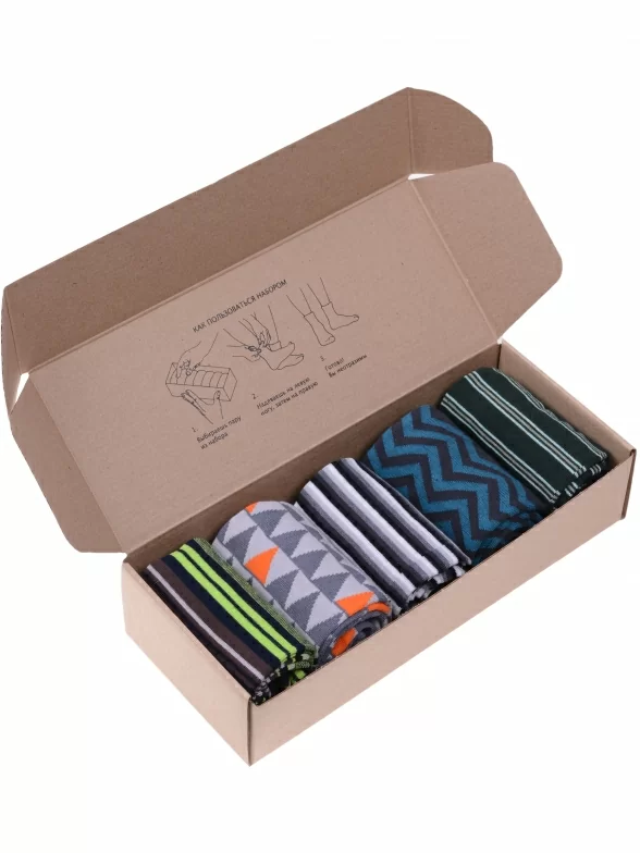 Набор мужских качественных носков пригодится каждому мужчине любого возраста. В комплект входит 5 разных пар носков с различными принтами.