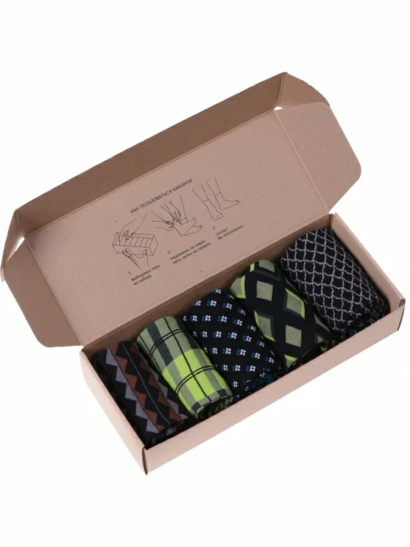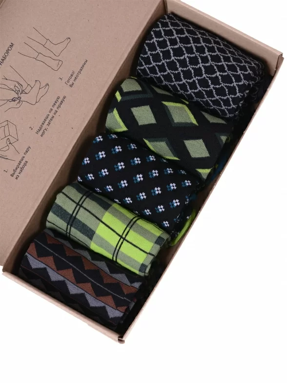Набор мужских качественных носков пригодится каждому мужчине любого возраста. В комплект входит 5 разных пар носков с различными принтами.