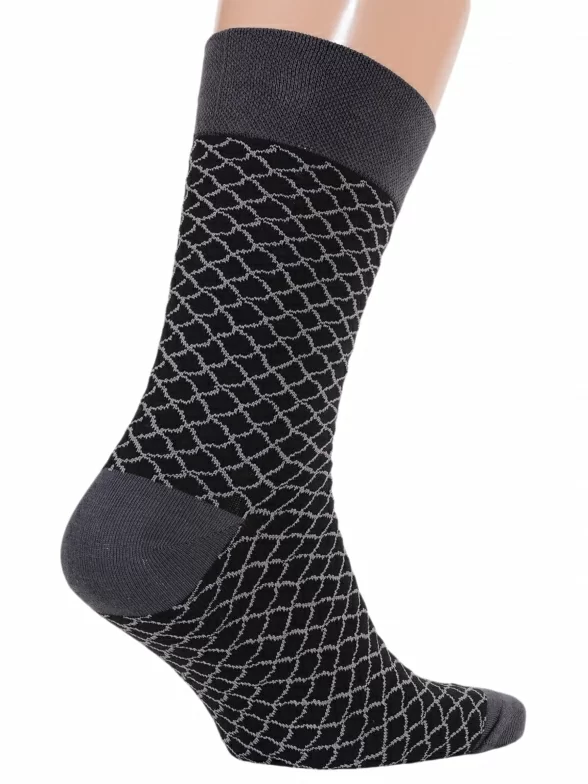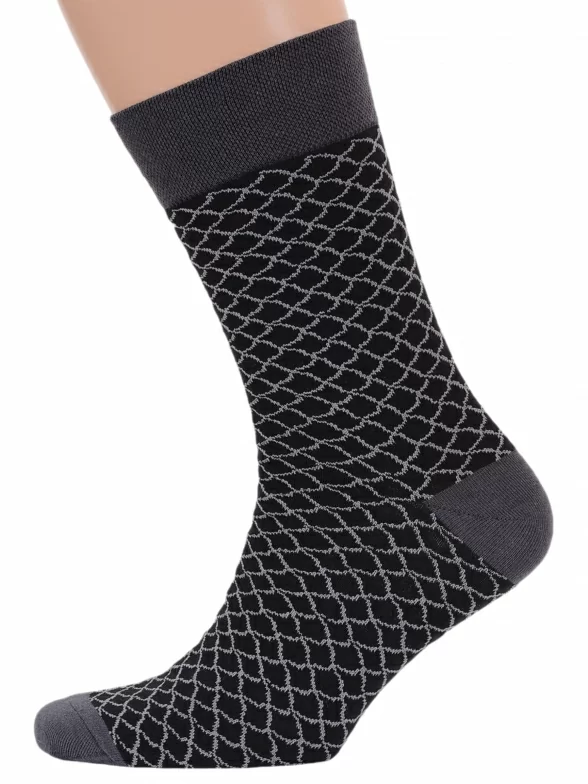 Носки вяжутся на российской фабрике МС Клаб на современных станках высокого класса (с плотностью вязки в 200 игл). Благодаря качественному оборудованию и оптимальному сочетанию гребенного хлопка и синтетических нитей эти носки износостойкие, гладкие и плотные. Двойной широкий борт не пережимает ногу, при этом надежно фиксирует носок на голени. Не теряют свою форму и цвет после многочисленных стирок. Процентное соотношение волокон: 82% хлопок, 15% полиамид, 3% эластан.