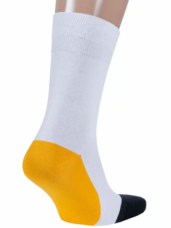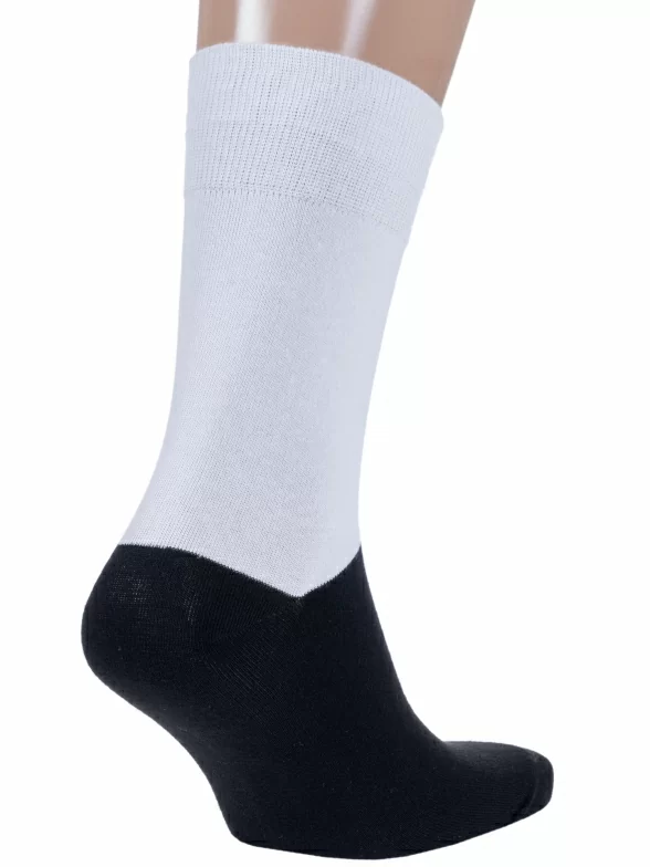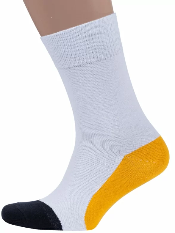 Носки вяжутся на российской фабрике МС Клаб на современных станках высокого класса (с плотностью вязки в 200 игл). Благодаря качественному оборудованию и оптимальному сочетанию гребенного хлопка и синтетических нитей эти носки износостойкие, гладкие и плотные. Двойной широкий борт не пережимает ногу, при этом надежно фиксирует носок на голени.