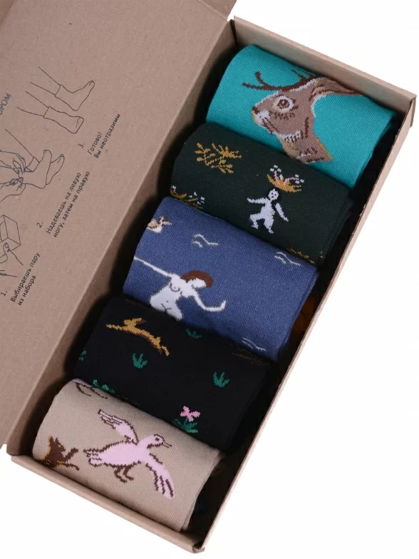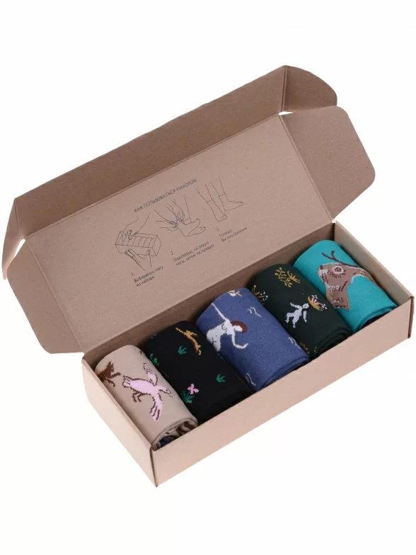 Набор мужских качественных носков пригодится каждому мужчине любого возраста. В комплект входит 5 разных пар носков с различными принтами.