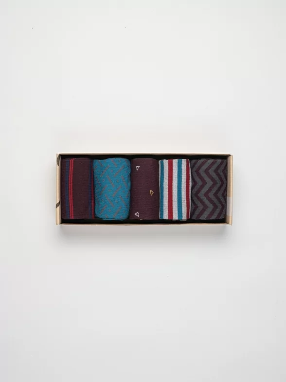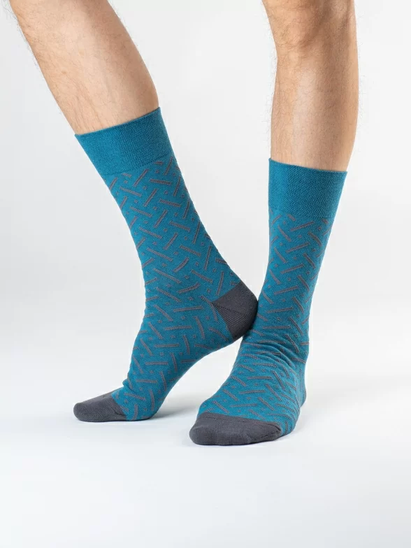 Дизайнерские носки с различными геометрическими принтами подойдут на каждый день и в качестве акцента к деловому образу.