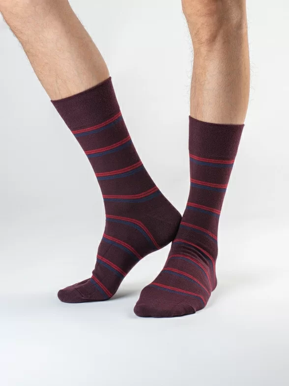 Модель средней длины с двойным бортом (манжетом резинки) и обычным швом на мыске. Связаны из хлопка на российской фабрике. Входящие также в состав полиамид и эластан делают носки более плотными, эластичными и износостойкими.