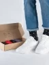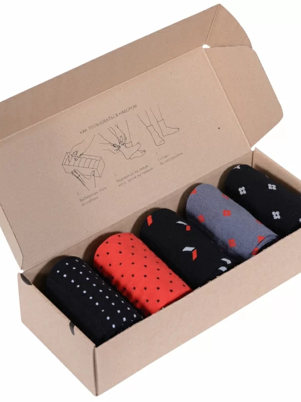 Носки без фабричных этикеток компактно свернуты рулончиками в стильной крафтовой коробке, которая в целях бережного отношения к природе отправляется без дополнительной транспортной упаковки.