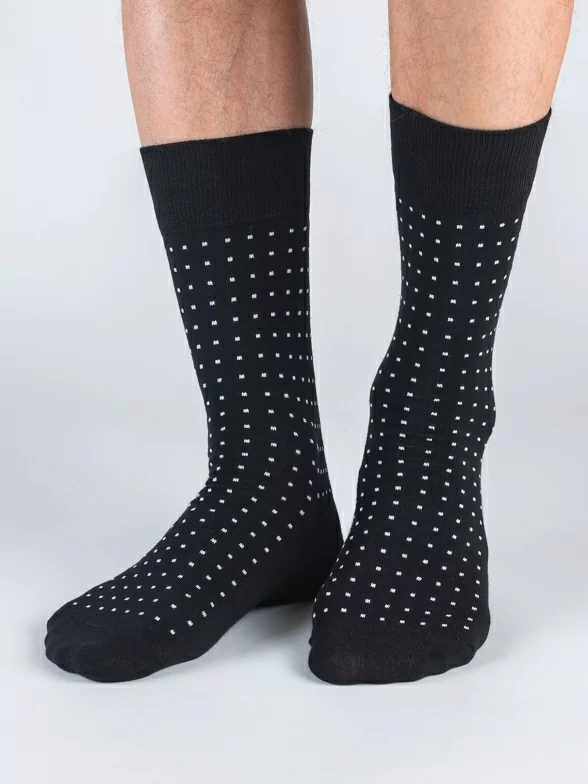 Дизайнерские носки с различными геометрическими принтами подойдут на каждый день и в качестве акцента к деловому образу.