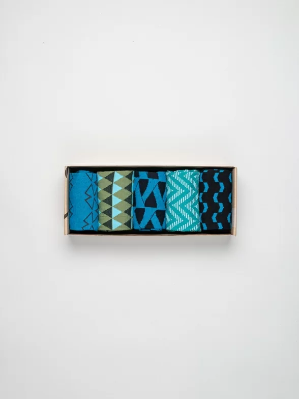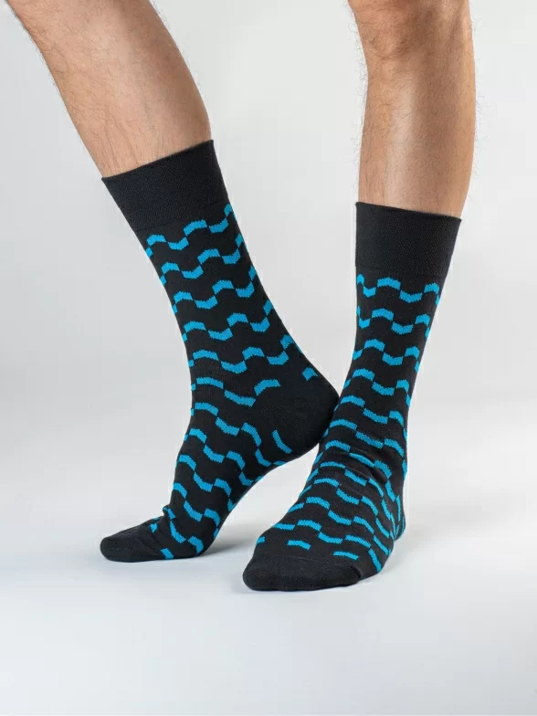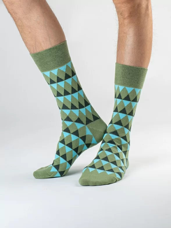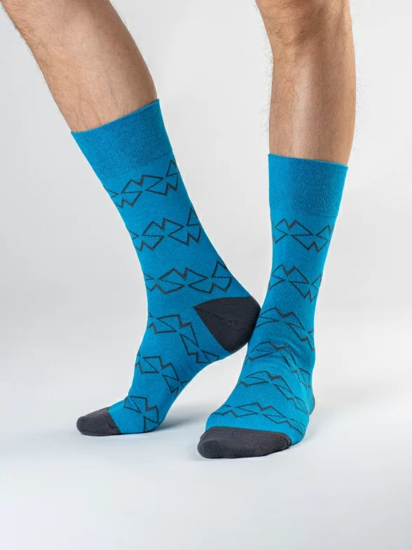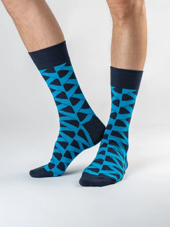 Дизайнерские носки с различными геометрическими принтами подойдут на каждый день и в качестве акцента к деловому образу.