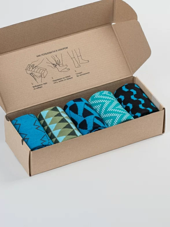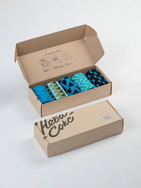 Носки без фабричных этикеток компактно свернуты рулончиками в стильной крафтовой коробке, которая в целях бережного отношения к природе отправляется без дополнительной транспортной упаковки.