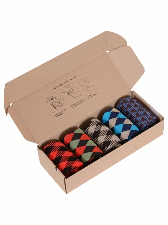 Носки без фабричных этикеток компактно свернуты рулончиками в стильной крафтовой коробке, которая в целях бережного отношения к природе отправляется без дополнительной транспортной упаковки.