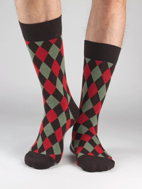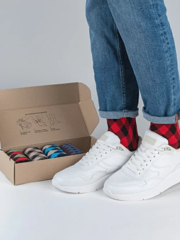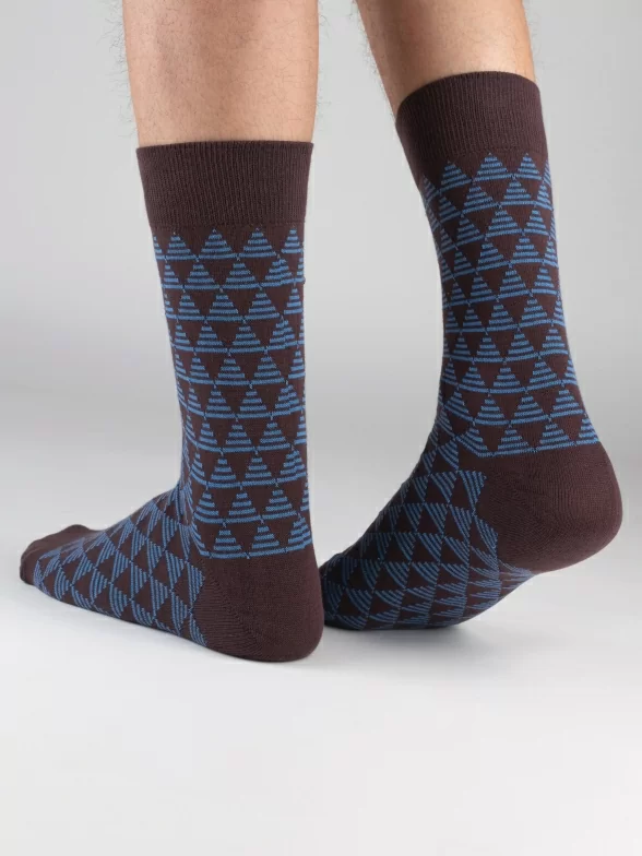 Дизайнерские носки с различными геометрическими принтами подойдут на каждый день и в качестве акцента к деловому образу.