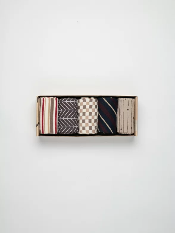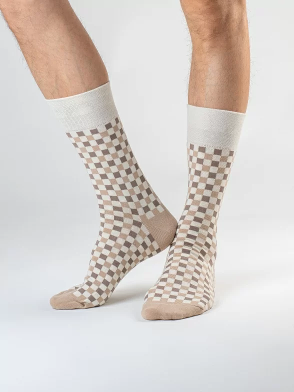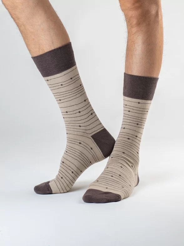 Дизайнерские носки с различными геометрическими принтами подойдут на каждый день и в качестве акцента к деловому образу.