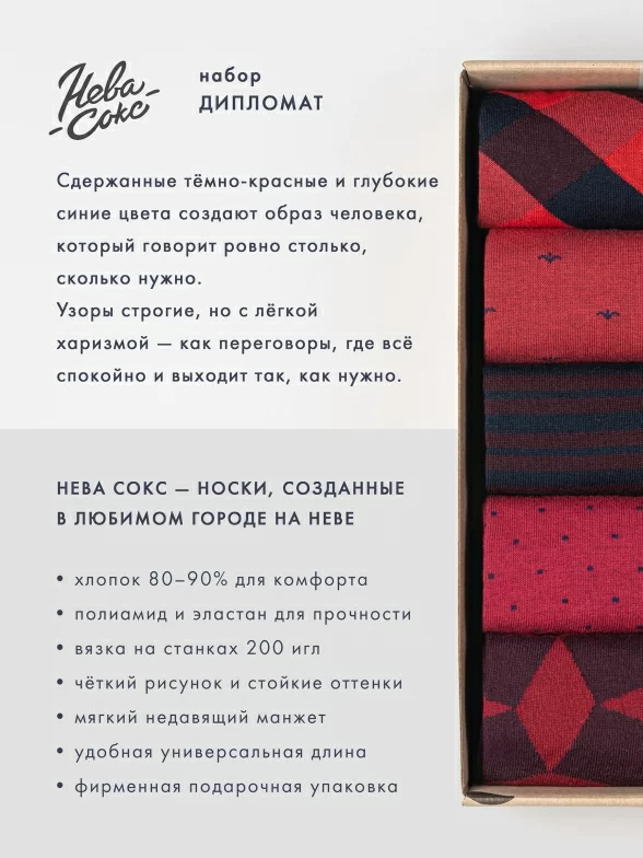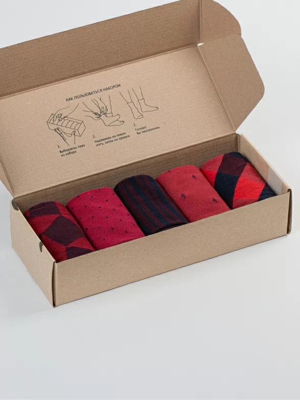 Носки без фабричных этикеток компактно свернуты рулончиками в стильной крафтовой коробке, которая в целях бережного отношения к природе отправляется без дополнительной транспортной упаковки.