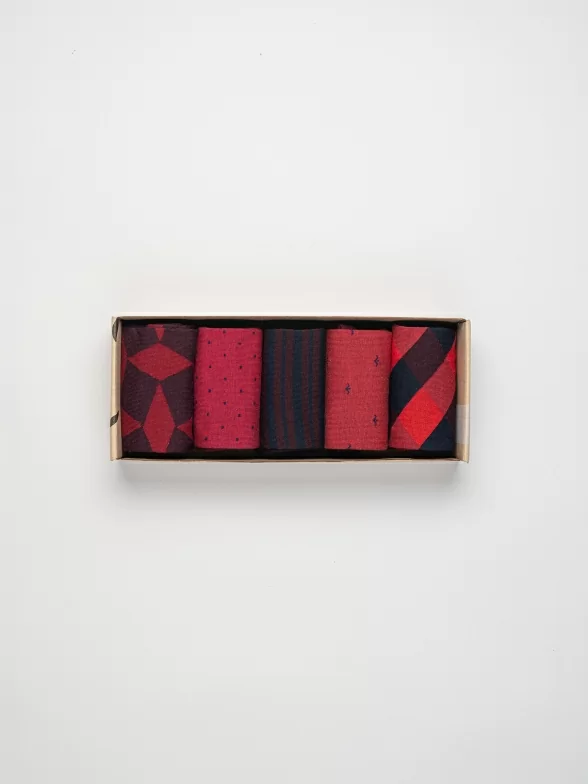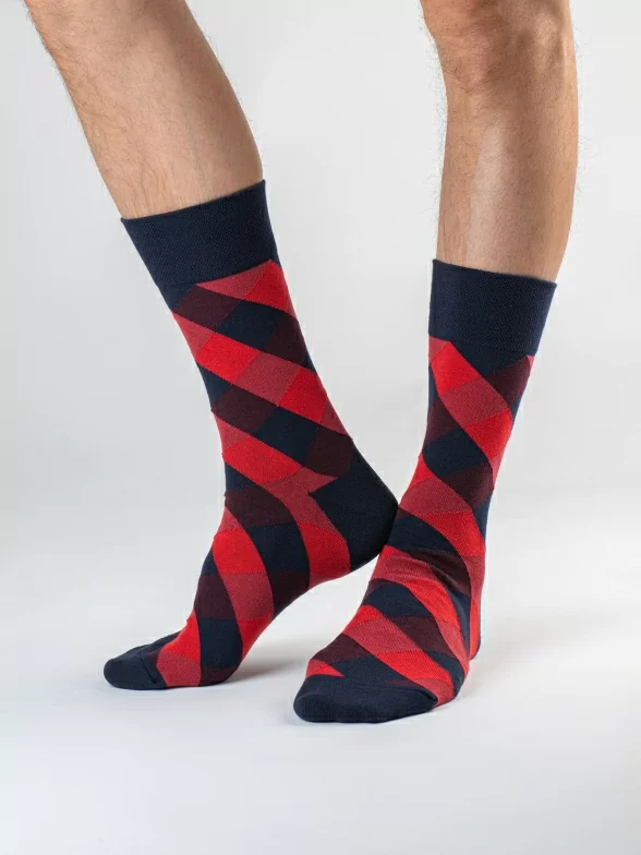 Дизайнерские носки с различными геометрическими принтами подойдут на каждый день и в качестве акцента к деловому образу.