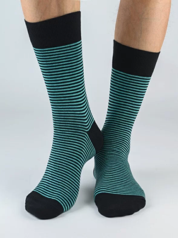 Модель средней длины с двойным бортом (манжетом резинки) и обычным швом на мыске связана из хлопка на российской фабрике. Входящие также в состав полиамид и эластан делают носки более плотными, эластичными и износостойкими.