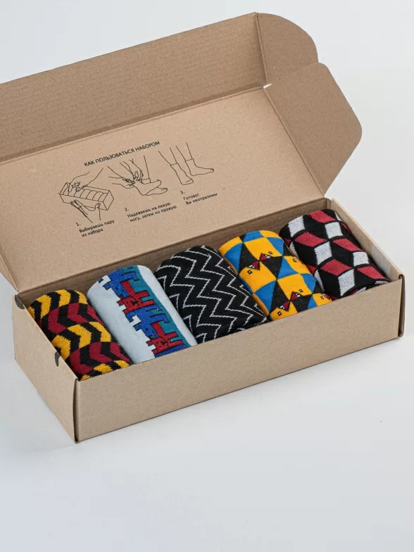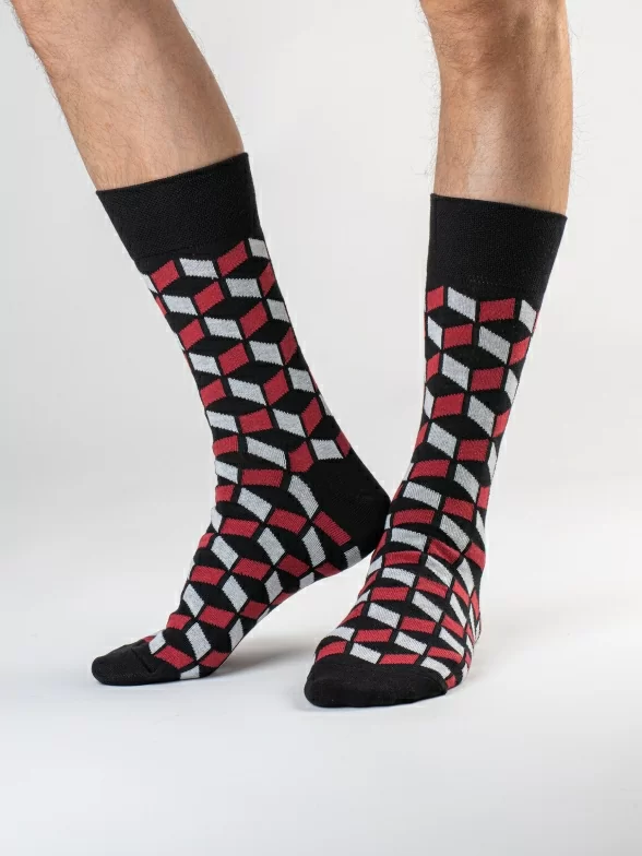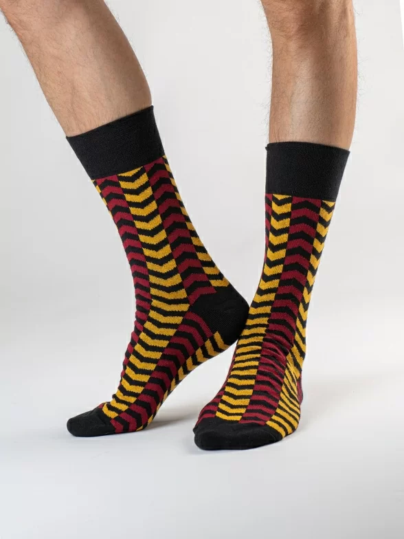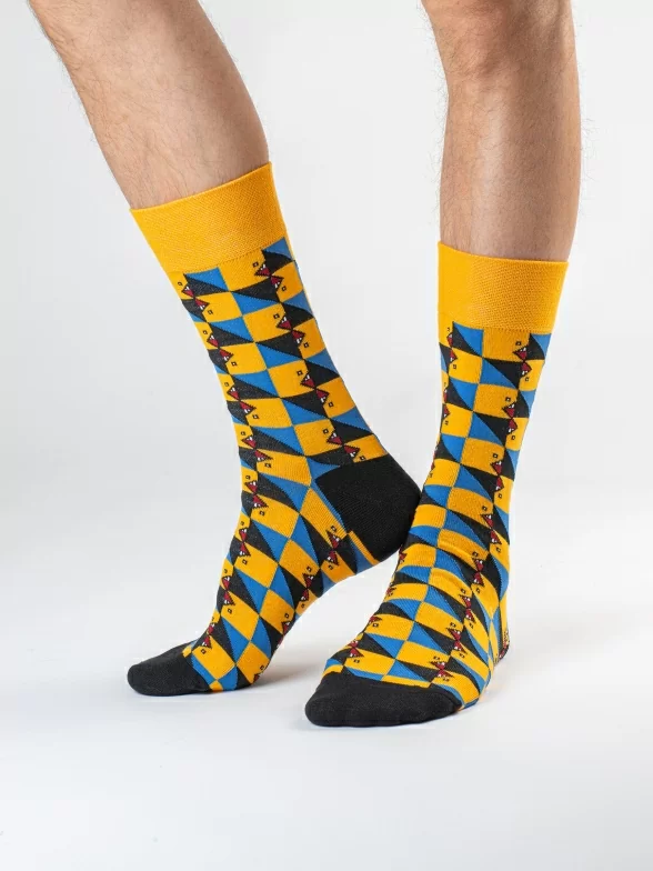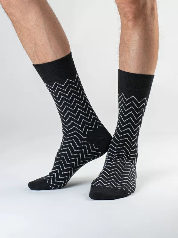 Дизайнерские носки с различными геометрическими принтами подойдут на каждый день и в качестве акцента к деловому образу.