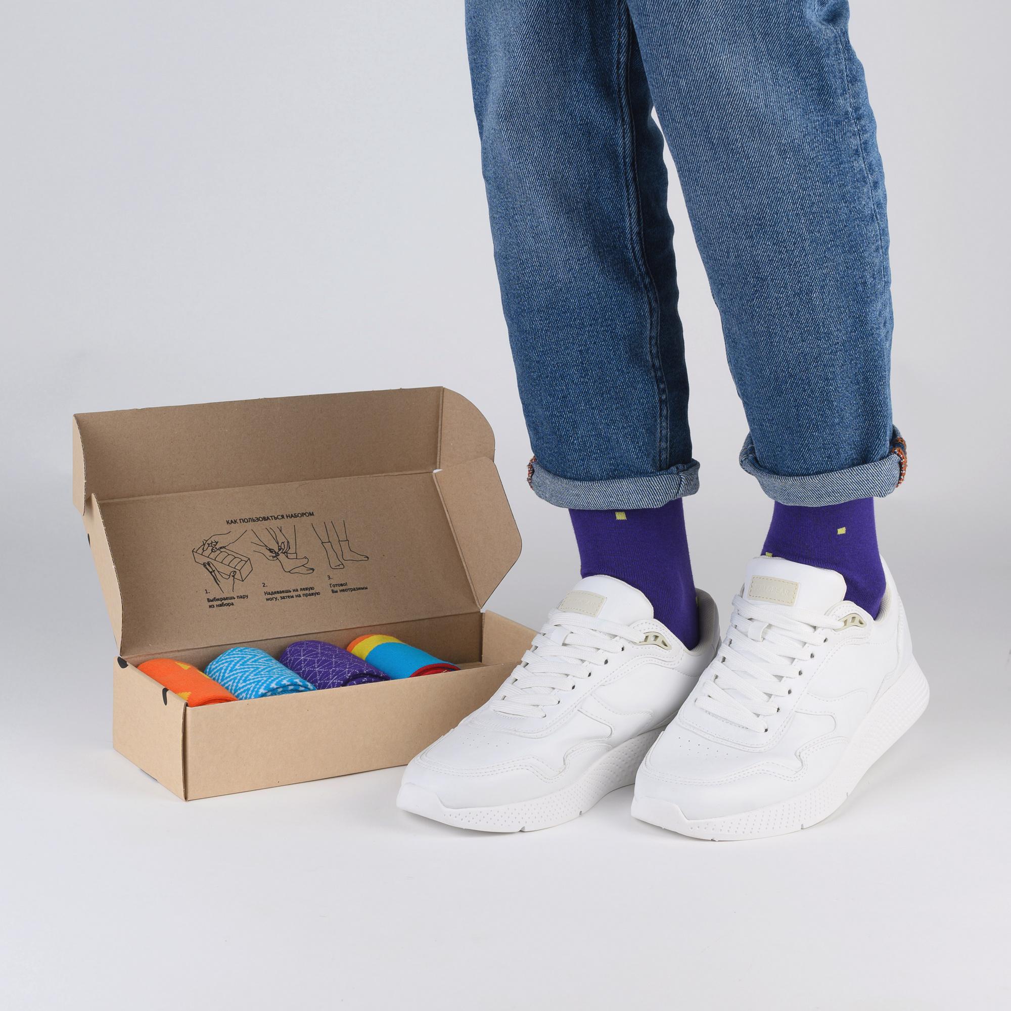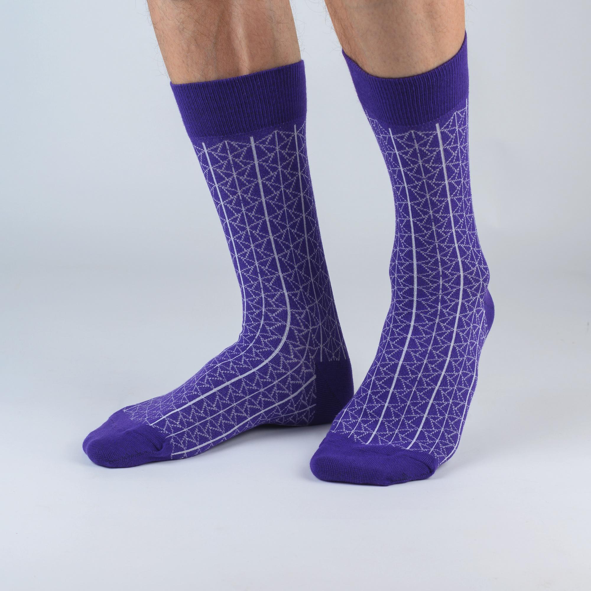 Дизайнерские носки с различными геометрическими принтами подойдут на каждый день и в качестве акцента к деловому образу.