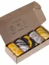 Носки без фабричных этикеток компактно свернуты рулончиками в стильной крафтовой коробке, которая в целях бережного отношения к природе отправляется без дополнительной транспортной упаковки.