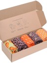 Носки без фабричных этикеток компактно свернуты рулончиками внутри крафтовой фирменной коробки, которая в целях бережного отношения к природе отправляется без дополнительной упаковки.