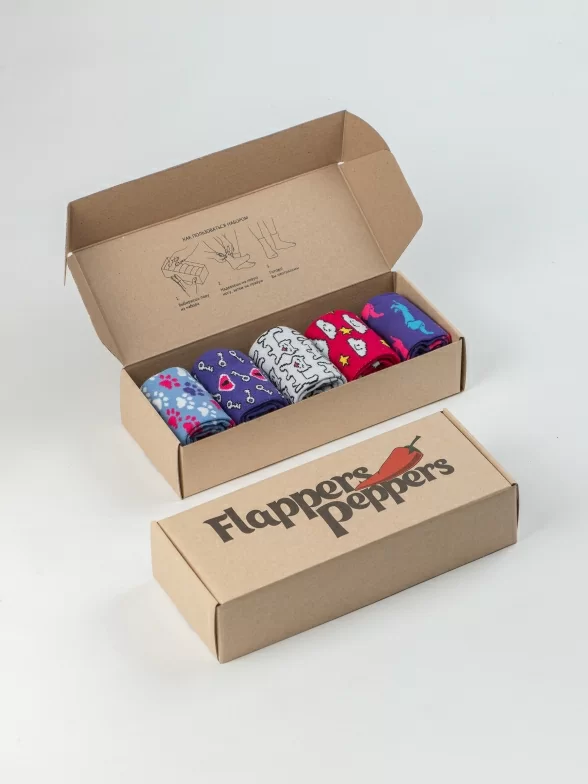 Набор из 5 пар ярких женских хлопковых носков бренда Flappers Peppers.