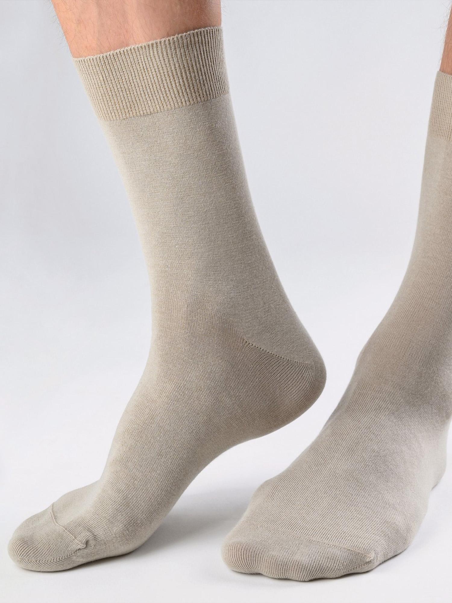 В набор входит 60 пар однотонных темно-бежевых мужских носков бренда RuSocks. Модель средней длины высокой плотности вязки, отличаются одинарным бортом (манжетом резинки) и неощутимым швом!