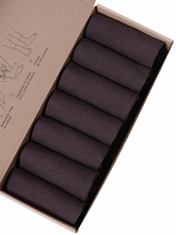 Носки компактно свернуты рулончиками без фабричных этикеток внутри стильной фирменной коробки. Дополнительно упакована в плотный картон, предотвращающий возможные потертости и деформацию во время доставки.