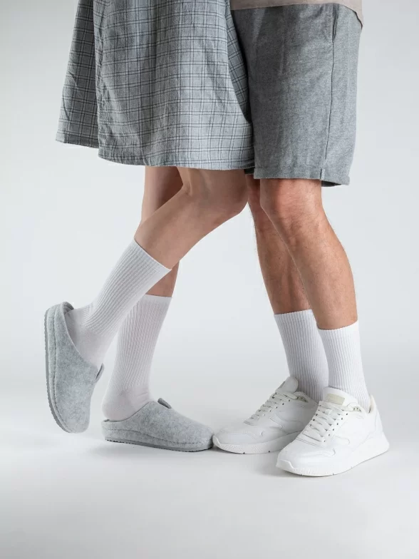 Носки вяжутся на российской фабрике МС Клаб на современных станках высокого класса (с плотностью вязки в 200 игл). Благодаря качественному оборудованию и оптимальному сочетанию гребенного хлопка и синтетических нитей эти носки износостойкие, гладкие и плотные. Двойной широкий борт не пережимает ногу, при этом надежно фиксирует носок на голени.