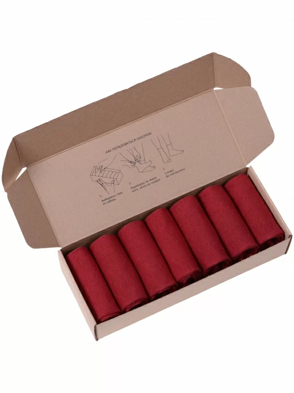 Носки компактно свернуты рулончиками без фабричных этикеток внутри стильной фирменной коробки. Дополнительно упакована в плотный картон, предотвращающий возможные потертости и деформацию во время доставки.