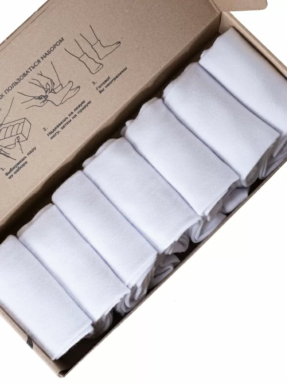 Носки компактно свернуты рулончиками без фабричных этикеток внутри стильной фирменной коробки.