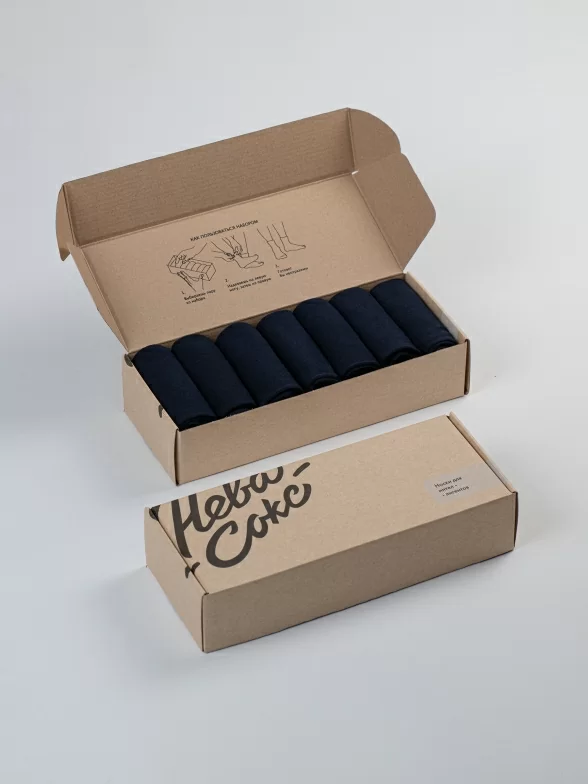 Носки компактно свернуты рулончиками без фабричных этикеток внутри стильной фирменной коробки. Дополнительно упакована в плотный картон, предотвращающий возможные потертости и деформацию во время доставки.