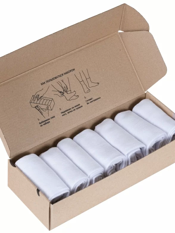 Носки компактно свернуты рулончиками без фабричных этикеток внутри стильной фирменной коробки. Дополнительно упакована в плотный картон, предотвращающий возможные потертости и деформацию во время доставки.