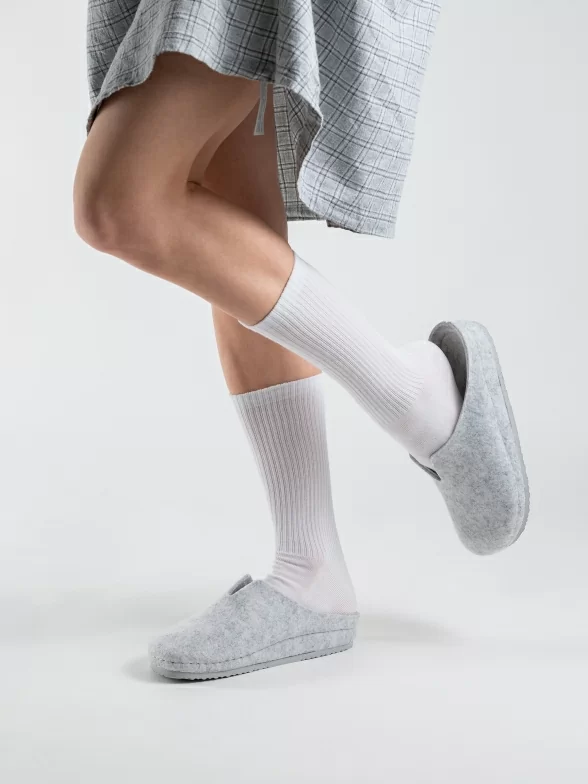 Носки вяжутся на российской фабрике МС Клаб на современных станках высокого класса (с плотностью вязки в 200 игл). Благодаря качественному оборудованию и оптимальному сочетанию гребенного хлопка и синтетических нитей эти носки износостойкие, гладкие и плотные. Двойной широкий борт не пережимает ногу, при этом надежно фиксирует носок на голени.