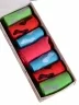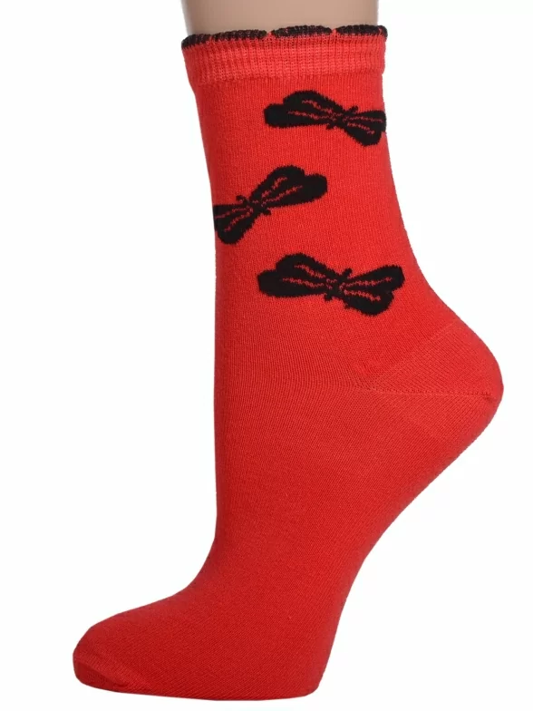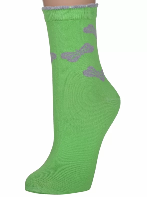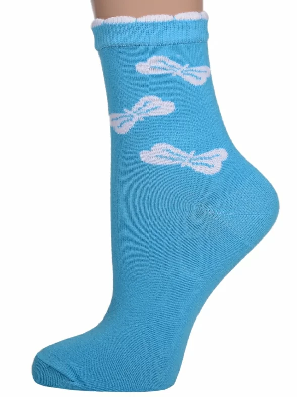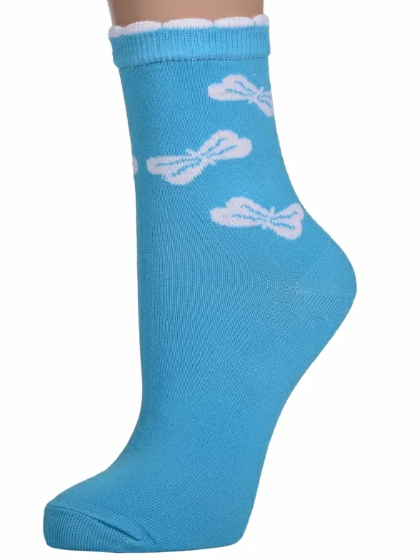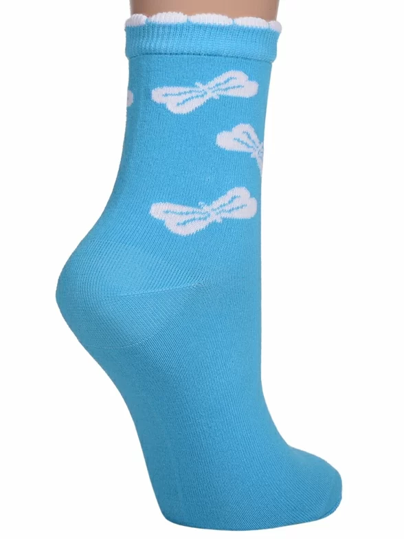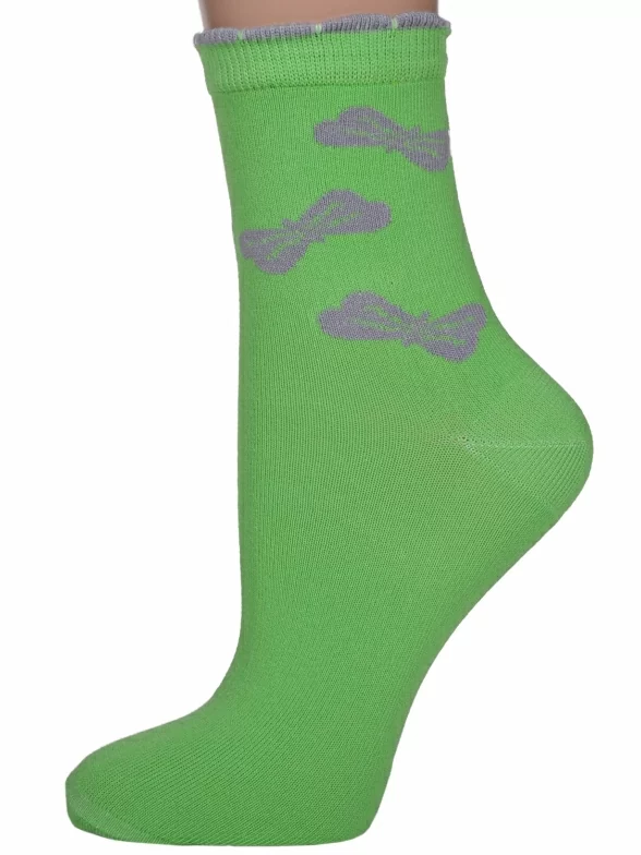- 6 пар средней длины с узором в виде бантиков: по 3 пары красного, салатового и бирюзового цветов.