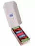 Носки аккуратно свернуты в рулончики в фирменной коробке, которая дополнительно упаковывается в плотный транспортный картон для сохранности при доставке.