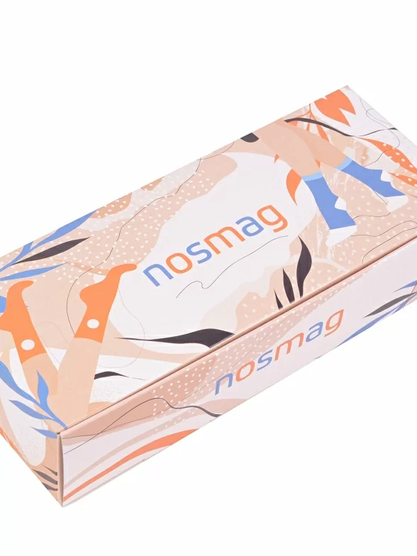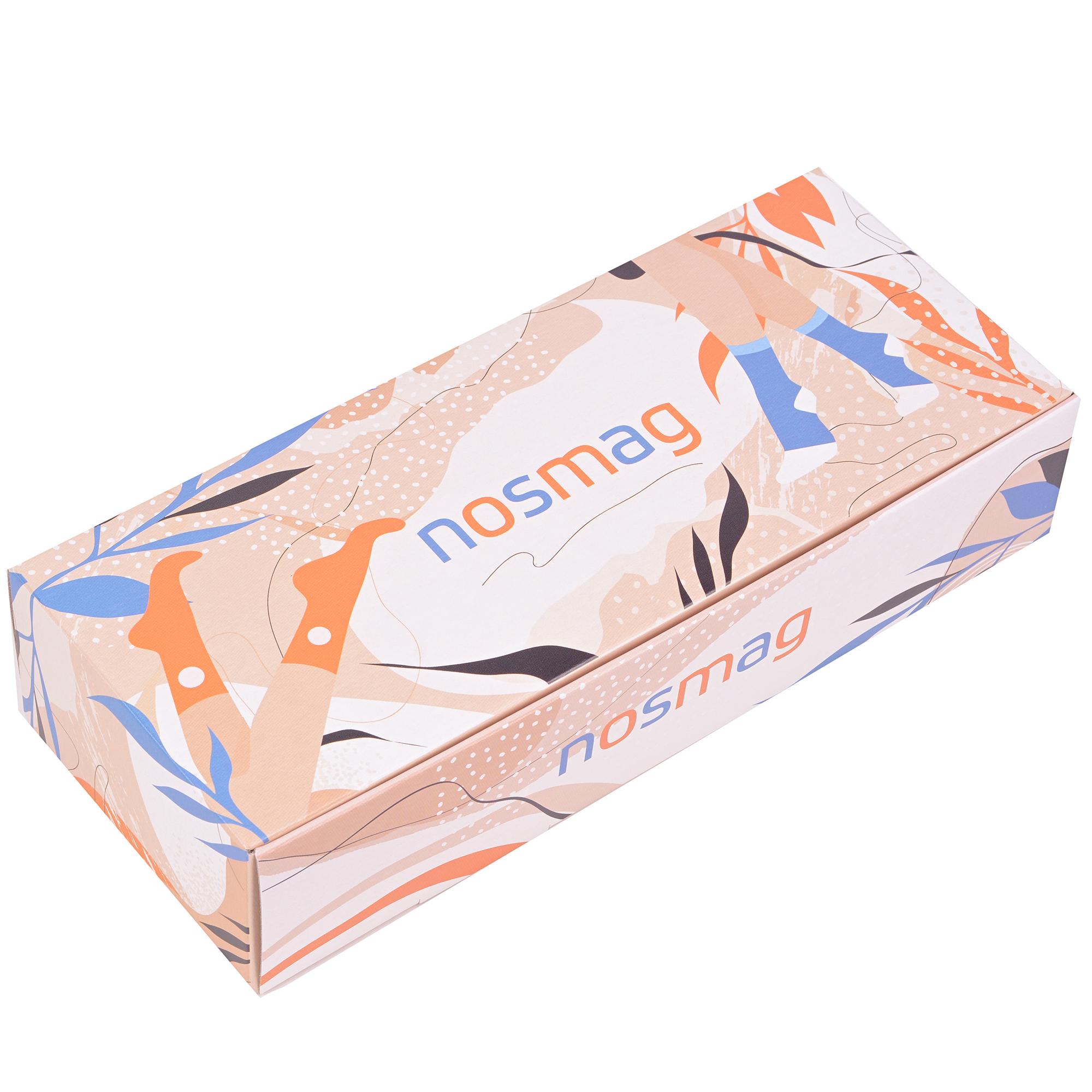 Носки аккуратно свернуты в рулончики в фирменной коробке, которая дополнительно упаковывается в плотный транспортный картон для сохранности при доставке.