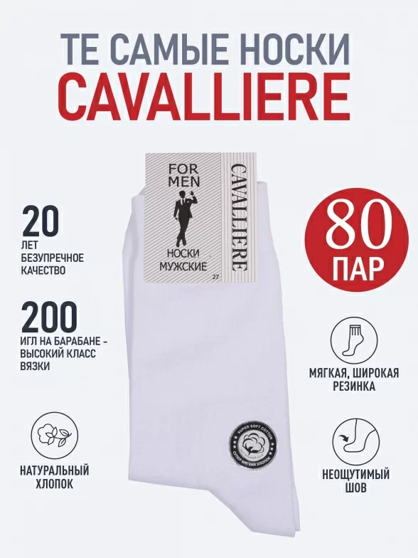 Набор из 80 пар мужских носков "Cavalliere" (RuSocks), CR-80, белые